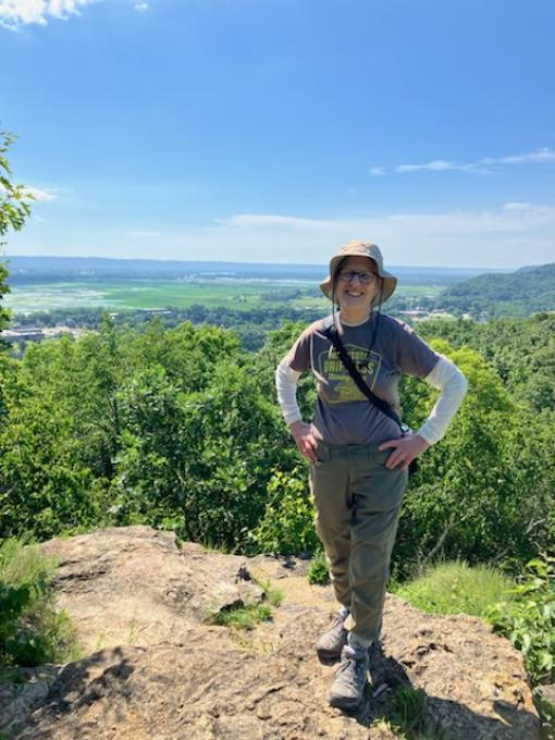 Although her blog features a photo of her on a craggy outlook, poles joyfully aloft as if holding hands with bluff and river, she began seeking a deeper connection to nature while recovering from a serious health issue. First, she joined the Driftless Drifters hiking group, sharing in the excitement of others who could find an inky cap mushroom.